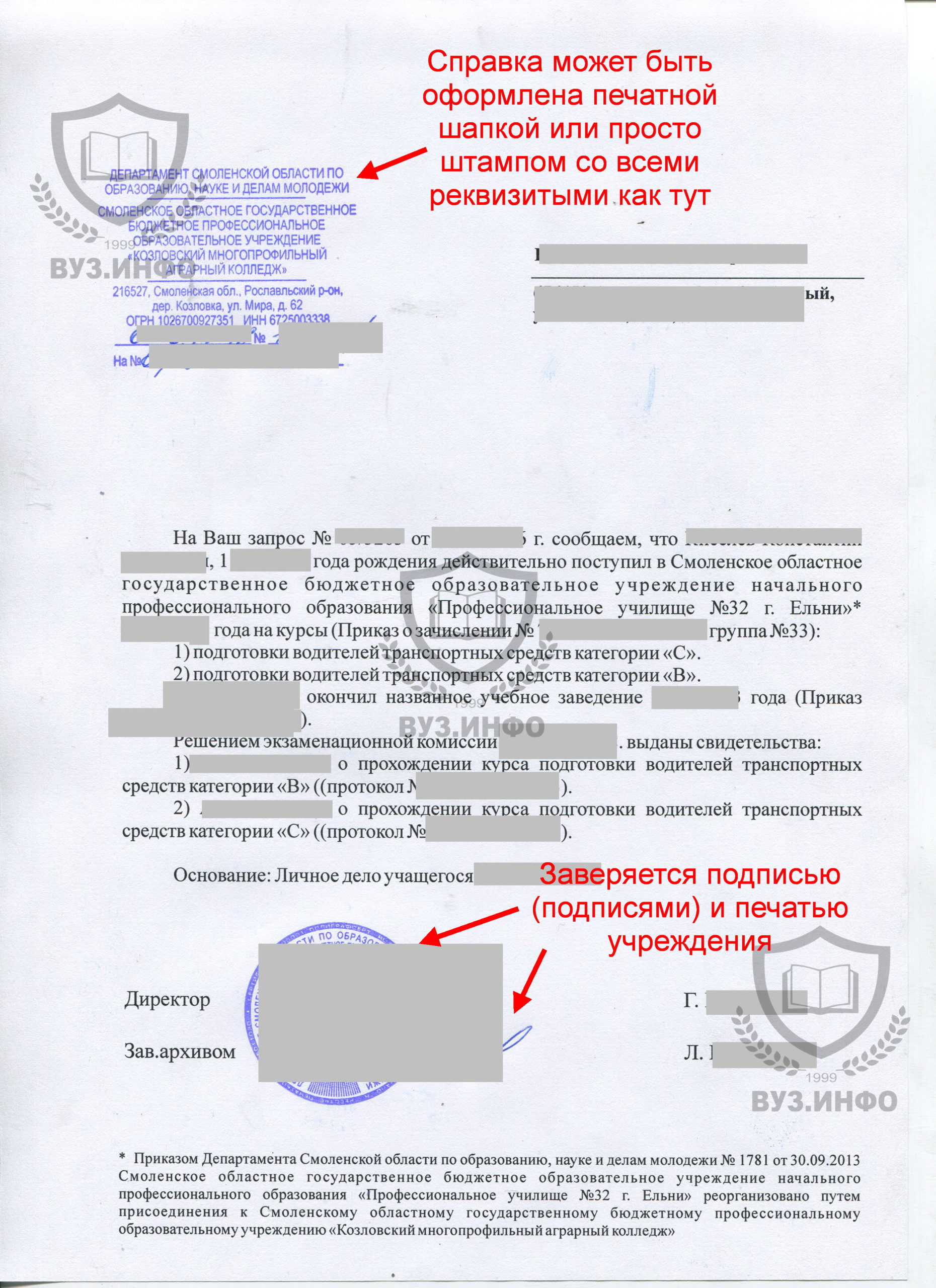 Образцы справок