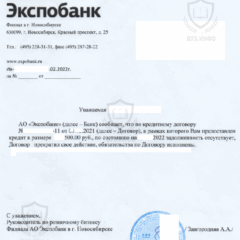 - Из банка о закрытии кредита