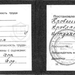 - Квалификационное удостоверение кровельщика о прохождении обучения в учебном комбинате с протоколом аттестации.